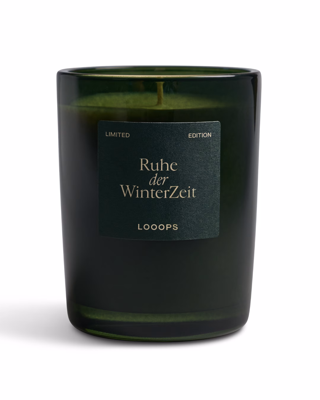Wenn es draußen dunkel und kalt wird, bringen edle Duftkerzen Licht und ein Gefüh von Wärme in die eigenen vier Wände. Ruhe der Winterzeit der Salzburger Manufaktur Looops ist Teil einer winterlichen Limited Edition und duftet herrlich nach Zimt, Blutorange und Gewürzen. 250 g um ca. € 50,− | looopsmoments.com
