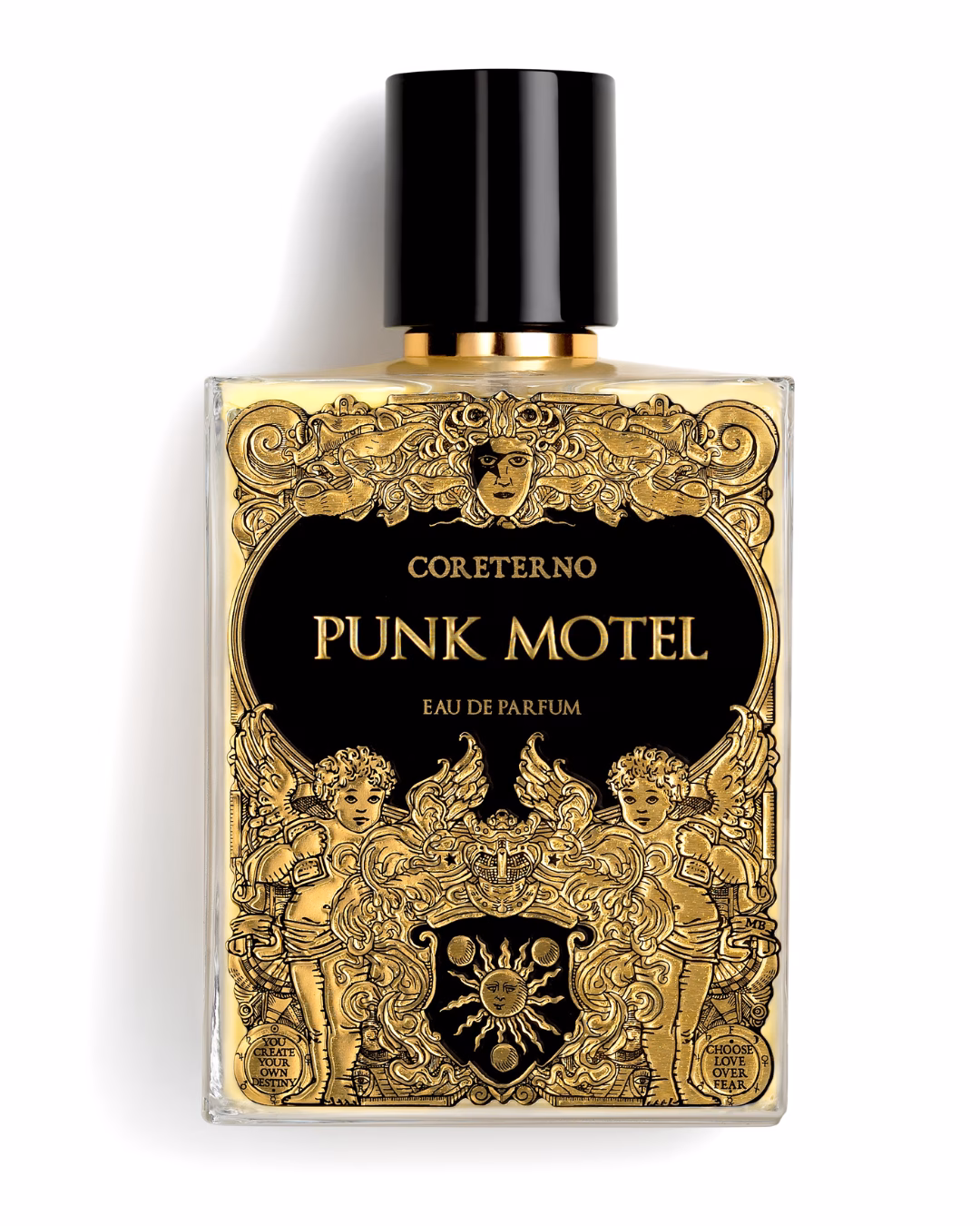 Dieses Parfum ist nicht nur ein Eyecatcher, sondern stiehlt auch Herzen: Punk Motel von Coreterno. Die Komposition mit Bergamotte und weißer Rose als Kopfnote ruht auf einer Basis von Moschus, Vanille und Ambretta. Das Ergebnis ist langanhaltend, ein bisschen pudrig, weich und einfach genial. 100 ml EdP um ca. € 170,− | coreterno.com